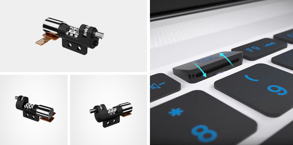 据了解,随着笔记本逐步的轻薄化,也有厂商开始追求极致的轻薄,追求极窄边框,因此需要缩小屏幕周围边框,然而这正是大多数电脑摄像头的安装位置。为此,z6com人生就是搏别出心裁,开发出一款带翻转功能的隐藏式摄像头驱动系统,利用紧凑的微型驱动结构,可以在有限的空间内,输出较大力矩,使得摄像头平时处于隐藏状态,当需要时候,只需要按下键盘即可一键弹出。