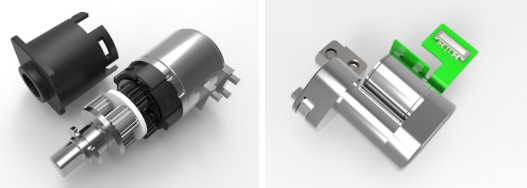 儿童学习机平板的内部空间相对来说比较小,在有限的空间里提升摄像头的稳定翻转,通过4mm行星齿轮箱、平行轴齿轮、步进电机、金属嵌件注塑、端面轴承等多项设计结合上固定架、连接板、连接翻转轴的使用,让驱动结构具有体积小、良好、工艺性好、可靠性高等特点。此设计中,平板摄像头翻转角度,可根据客户实际应用设定,解决摄像头翻转时所用翻转支架稳定性差的问题,提高了产品的使用寿命。